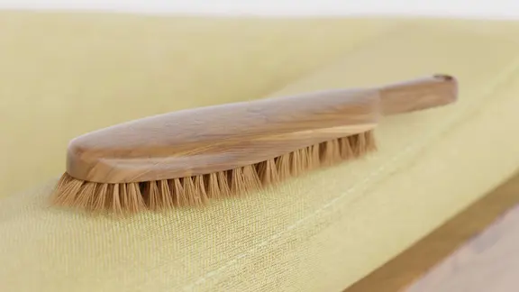 Saugen Sie wöchentlich die Stoffbezüge mit einem normalen Haushaltsstaubsauger mit Polsterdüse bei geringer Saugleistung ab, und/oder bürsten Sie sie mit einer weichen Polsterbürste in Strichrichtung aus. Bei Lederbezügen wischen Sie regelmäßig das Leder mit einem nebelfeuchten Tuch ab.