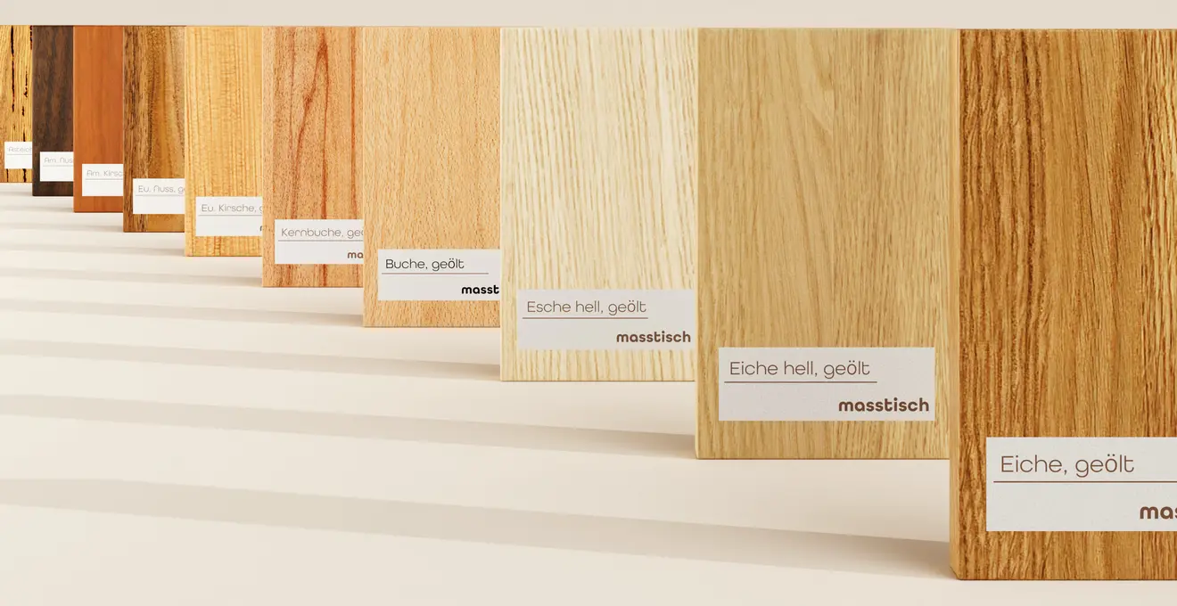 Ob Eiche, Nussbaum oder Esche – unsere Hölzer stehen exotischen Arten in Schönheit und Haltbarkeit in nichts nach. So entstehen Möbel mit Charakter, die Generationen überdauern.