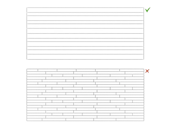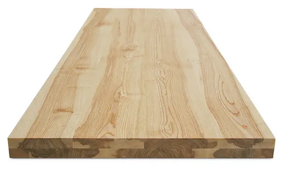 Viele Möbelhersteller arbeiten mit keilverzinkten Bohlen bzw. Patchwork-Verleimung. Hier werden kleine, ca. 50 cm lange Bretter zu einer langen Bohle verleimt, um so Kosten beim Material zu sparen. Das Ergebnis wirkt dabei oft nicht hochwertig, denn die Platten scheinen durch die Patchwork-Verleimung unruhig und auch der Maserungsverlauf des Holzes geht verloren.