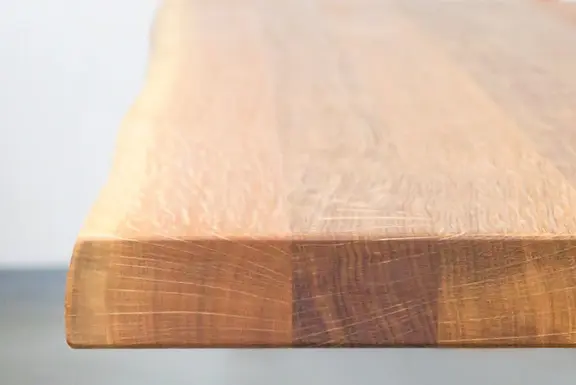 Einige Händler bieten Massivholztische mit optischen Plattenstärken von 3 cm oder 4 cm an, wobei die Platte nur ca. 2 cm stark ist und seitlich verblendet wird, um den Gesamteindruck optisch stärker erscheinen zu lassen. Wir von masstisch.de setzen auf vollmassive Platten mit den Stärken von 3 cm und 4 cm! Unsere Tische sind damit besonders robust und sollte es doch einmal zu Schrammen im Holz kommen, so lassen sich diese dank starker Plattenstärke bedenkenlos mit etwas schleifen ausbessern. Der Tisch sieht danach wieder aus wie neu!